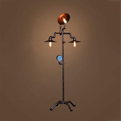 Lampada Vintage Da Terra Con Tubi Idraulici In Ghisa Effetto Arrugginito