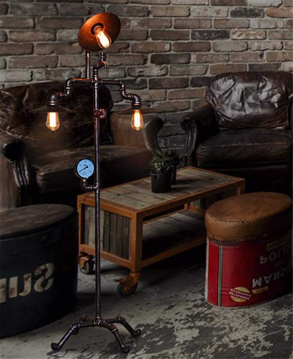 Lampada Da Terra Industrial Retro Steampunk Manometro E
