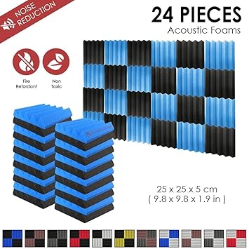 Super Dash 24 Pezzo Di 25 X 25 X 5 Cm Pollici Cuneo Fonoassorbenti Isolanti Studio Acustici Parete Piastrelle Pannelli Sd1134 Nero Blu